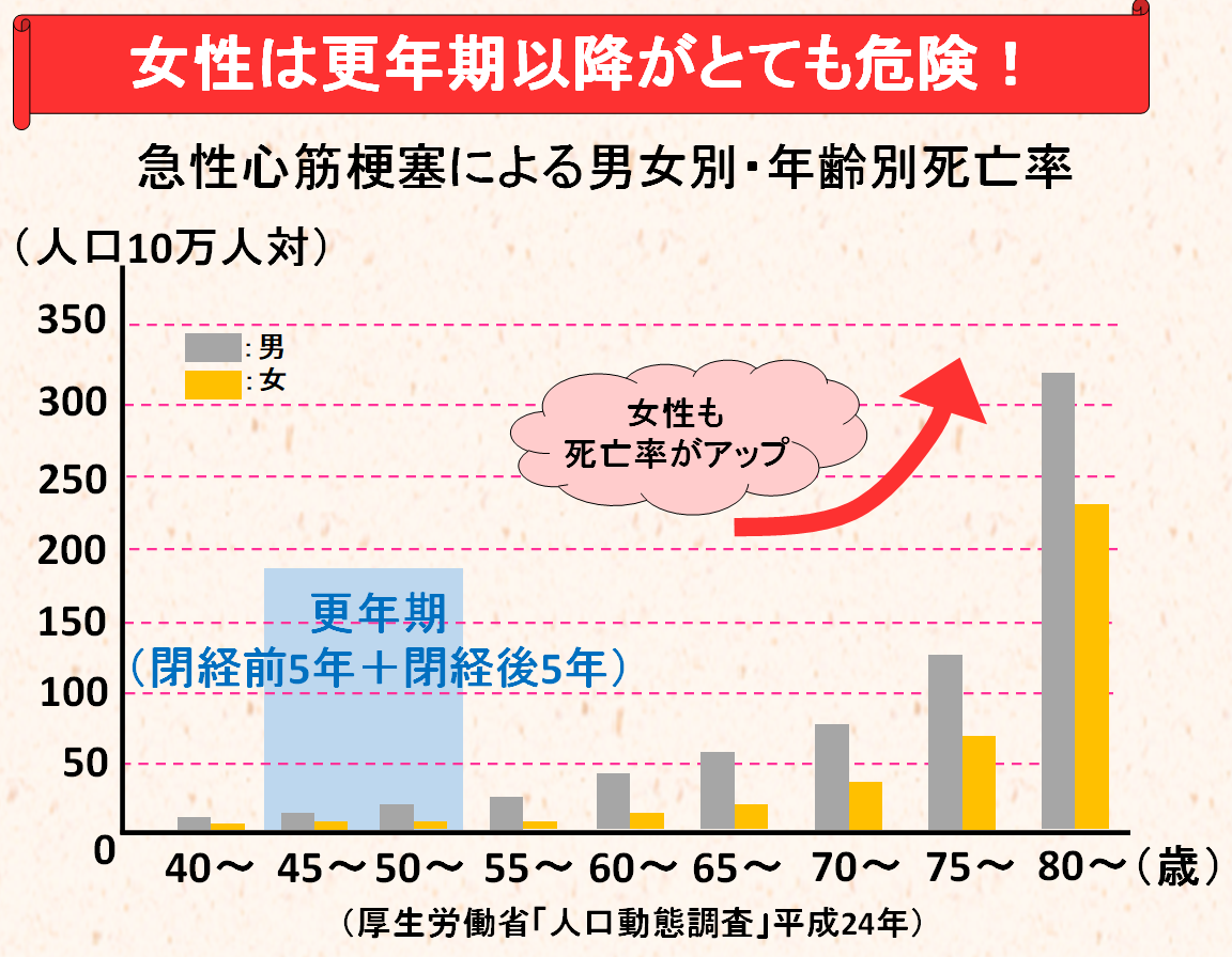 女性の場合は、若い頃は女性ホルモンの働きで血中脂質は良い状態に保たれますが、閉経後には生活習慣の影響が急激に現れます。